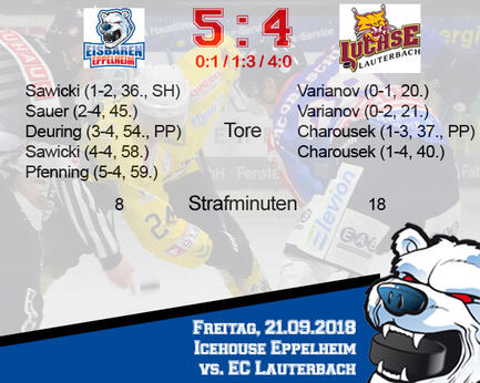 Im Rückspiel konnten die Eisbären die Luchse aus Lauterbach erneut bezwingen und nach 1:4 Rückstand nach Toren von Lukas Sawicki (2), René Sauer, Dominik Deuring und Manuel Pfenning das Spiel noch zu einem 5:4 Erfolg drehen.